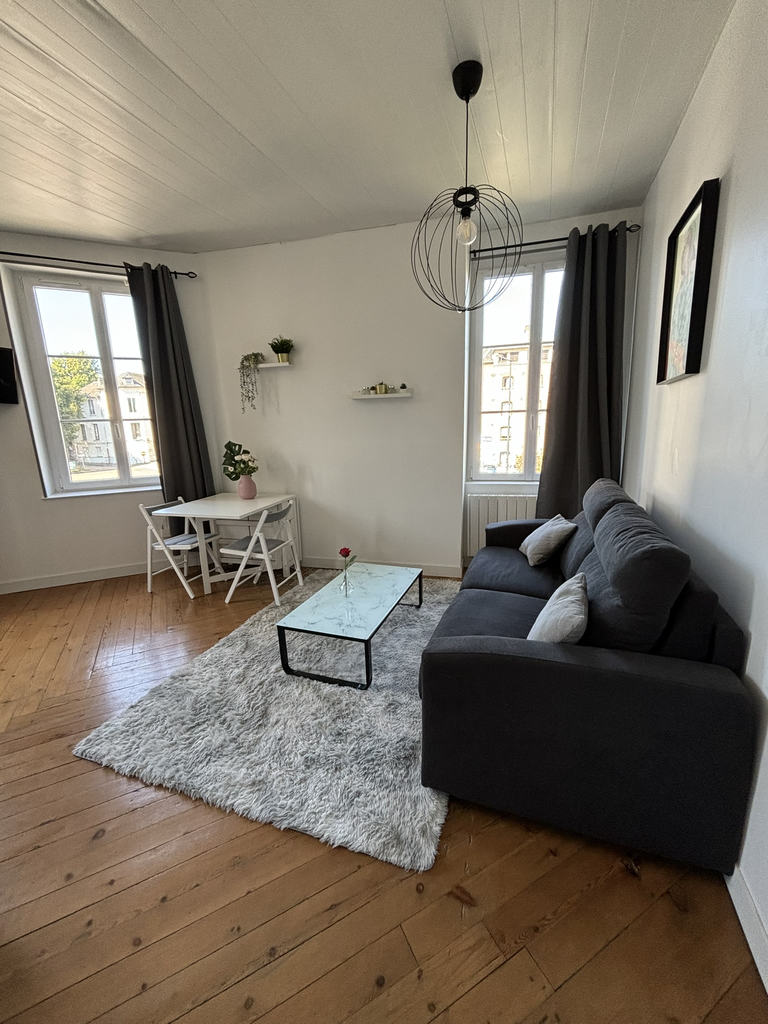 Idéalement situé à deux pas des commerces, restaurants et de la gare de bus, cet appartement deux pieces de 40 m² marie style ancien et touches chaleureuses pour un séjour inoubliable. Que vous soyez en déplacement professionnel ou en escapade romantique, vous apprécierez son atmosphère apaisante et son confort moderne.