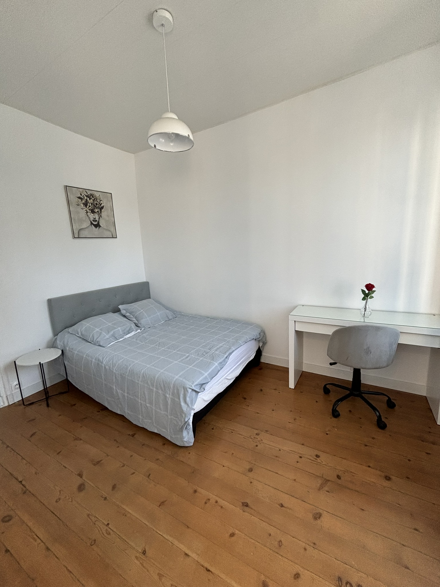 → Chambre avec grand lit double, linge de maison douillet, rangements intégrés et un bureau