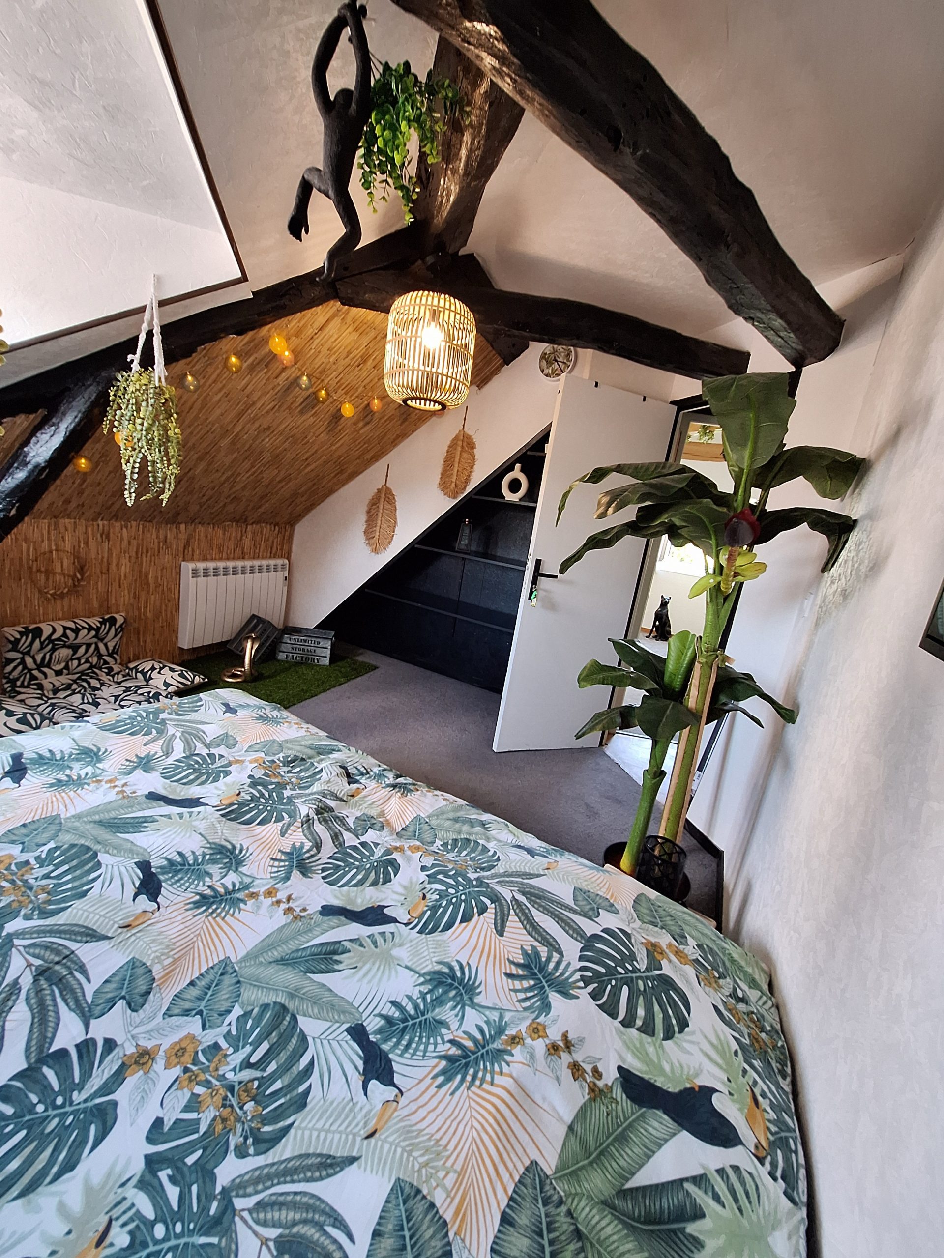 4 chambres doubles sous poutres : dont la chambre cabane, ambiance refuge tropical.